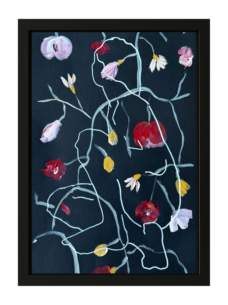 These flowers are inspired by Boretskaya folk painting, where they symbolize the Tree of Life. They are not just decorative elements, but structures encoded with a worldview and a way of perceiving life. The flower's traditional appearance is transformed — just as our modern life has changed. Yet, even after this transformation, the image remains recognizable. The flower becomes a metaphor for the visual, mental, spiritual, and genetic codes we carry.