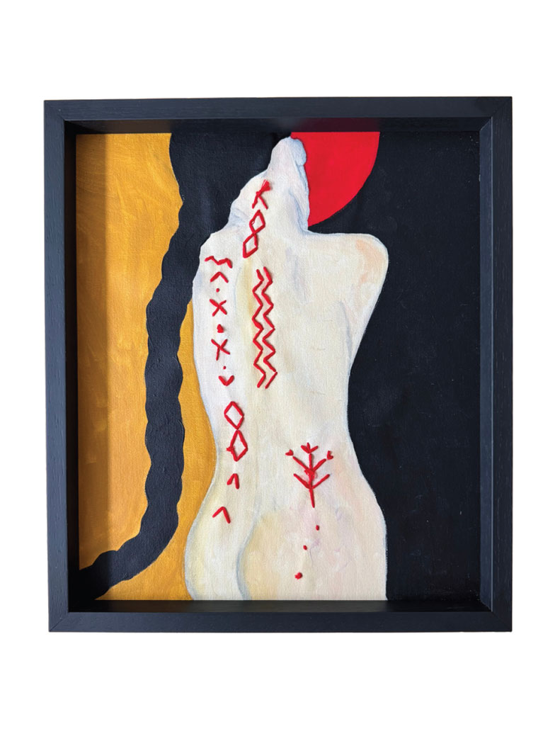 - Embroidery and acrylics on canvas